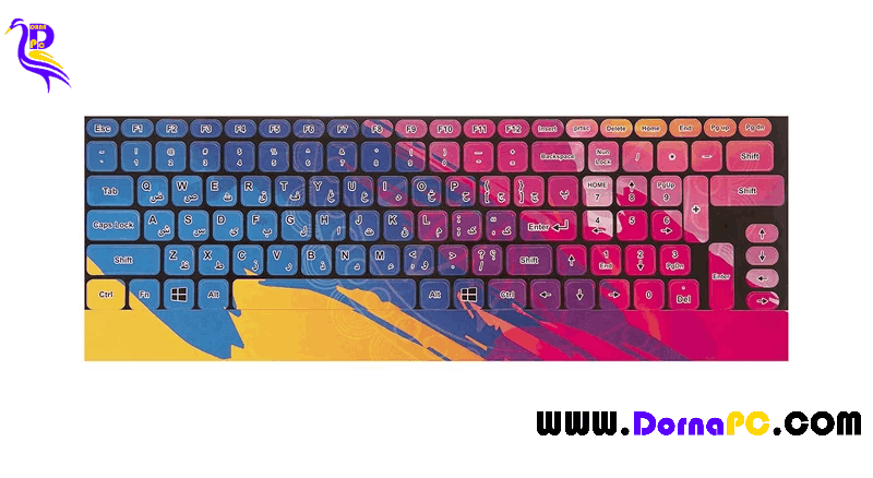 برچسب طرح دار کیبورد دارای حروف انگلیسی و فارسی