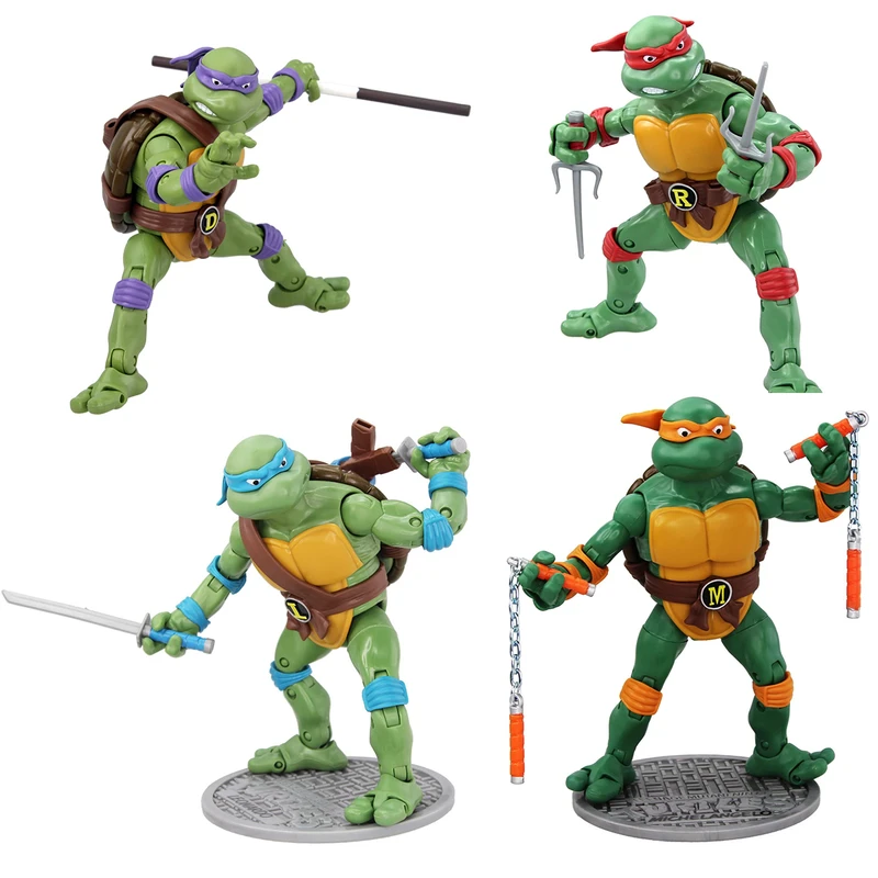 اکشن فیگور لاک پشت نینجا پایه دار شامل چهار اکشن فیگور لاک پشت های نینجا است که ارتفاع حدود ۱۸ سانت دارند و هر یک پایه که بروی آن قرار می گیرند و می توان از آنها جدا کرد. نام هر یک از لاک پشت ها بروی پایه نوشته شده است. اعضا بدن فیگور ها کاملا مفصلی است و قابلیت حرکت دارند. هر فیگور شخصیت اسباب بازی دارای اسلحه مخصوص به خود را دارد و جای بروی بدن خود برای گذاشتن وسیله خود. جنس این محصول از PVC بوده و از کیفیت مطلوبی برخوردار است. اسلحه لاک پشت ها را در دستانش قرار دهید و با دشمنان آنها بجنگید و لذت ببرید. کیفیت اسباب بازی بسیار خوب است و مفاصل به خوبی طراحی شده اند به طوری که قدرت حرکت خوبی دارند و می توان فیگور را در حالت های مختلف قرار داد. این اسباب بازی لاک پشت نینجا برای کودکان و افراد کلکسیون دار بسیار جذاب است. پایه بزرگ و مفاصل و طراحی خوب یکی از ویژگی های خوب این اسباب بازی می باشد. وسایل که مشابه نمونه واقعی شخصیت های لاک پشتهای نینجا می باشد نیز از ویژگی های این اسباب بازی پسرانه است .