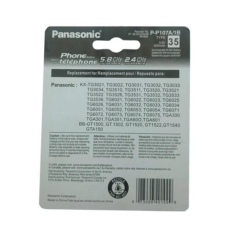 سازگار با دستگاه های پاناسونیک مدل هایKX-FPG۳۹۱ ،TG۲۳۰۲ ،TG۲۳۱۲ ،TG۲۳۱۳ ،TG۲۳۱۴ ،TG۲۳۲۲ ،TG۲۳۳۵ ،TG۲۳۳۶ ،TG۲۳۴۳ ،TG۲۳۴۴ ،TG۲۳۴۶ ،TG۲۳۵۵ ،TG۲۳۵۶ ،TG۲۳۵۷ ،TG۲۳۸۶ ،TG۵۰۵۰, TG۵۰۵۵ ،TG۵۲۰۰ ،TG۵۲۰۲ ،TG۵۲۱۰ ،TG۵۲۱۲ ،TG۵۲۱۳ ،TG۵۲۳۰ ،TG۵۲۴۰ ،TG۶۵۰۰ ،TG۶۵۰۲ ،TGA۵۲۰ ،TGA۵۲۳ ،TGA۶۵۰H تمام دستگاه های که مشابه این باتری را نیاز دارند.
