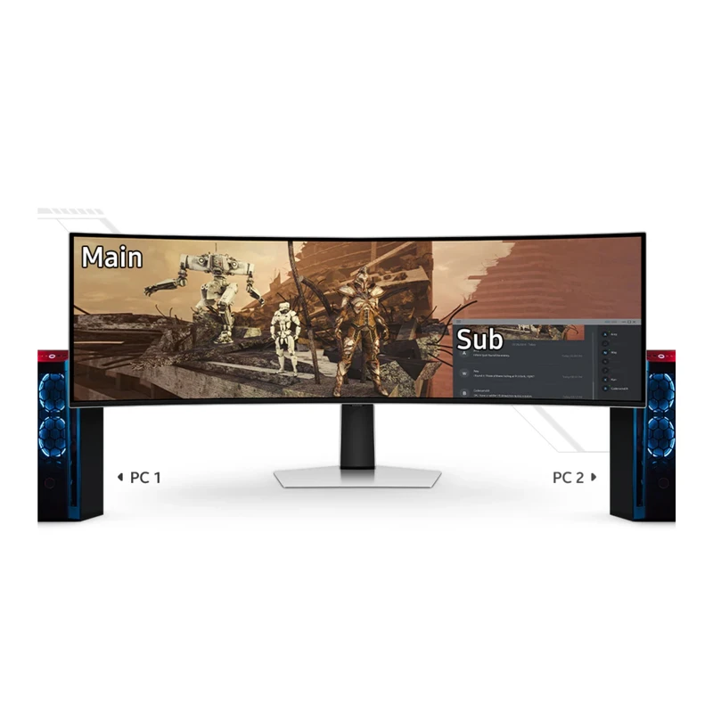 مانیتور خمیده گیمینگ 49 اینچ سامسونگ مدل LS49CG934SM، رزولوشن Dual QHD و نور پسزمینه Quantum Dot، دارای 2 عدد HDMI، با نسبت تصویر 32:9