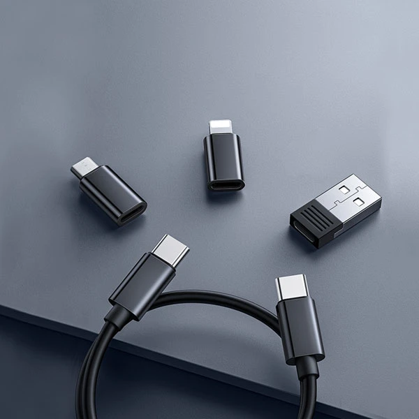 درون این باکس یک کابل شارژ دو سر تایپ سی 30 سانتیمتری, تبدیل Lightning، میکرو، یو اس بی و یک سوزن سیم کارت را گنجانده و در ضمن دو محفظه هم برای قرار دادن سیم کارت و کارت حافظه TF هم طراحی شده است. تبدیلها دارای درگاه تایپ سی هستند و با اتصال به کابل Type-C قابل استفاده برای انواع برندهای موبایل خواهند بود.