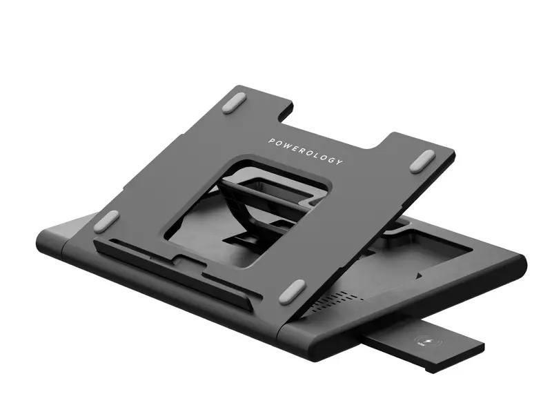 پایه لپ تاپ Multi-Functional Pro شرکت پاورولوژی دارای یک هاب تایپ سی مجهز به شارژر بی سیم است. این شارژر وایرلس می تواند هر دستگاهی را با توان تا 10 وات تغذیه کند. این دستگاه از گوشی های هوشمند اندروید و iOS که در حال حاضر از قابلیت شارژ بی سیم برخوردار هستند، پشتیبانی می کند.