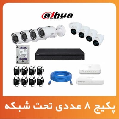 چه اقلامی در پکیج دوربین مداربسته 8 عددی تحت شبکه قرار دارد؟
