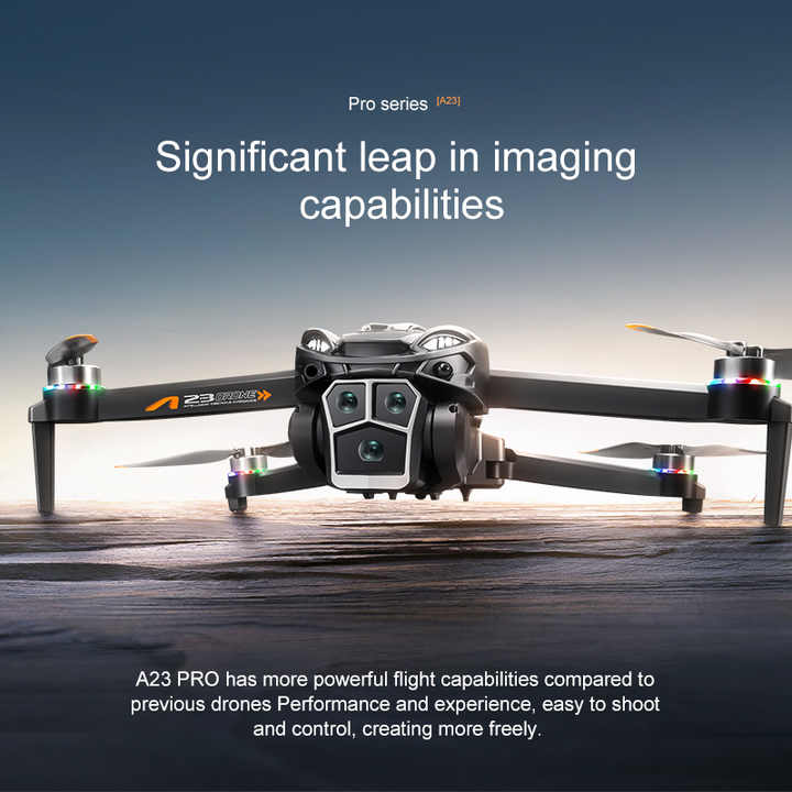 کوادکوپتر A23 با نورهای هفت رنگ LED به پرواز در شب جلوهای ویژه میبخشد. این نورها به کاربر کمک میکنند تا در شرایط نوری کم و تاریکی به راحتی کوادکوپتر را مشاهده و کنترل کنند. این نورها در بدنه و قسمت جلویی دستگاه قرار گرفتهاند و در هر زاویهای دید بهتری ایجاد میکنند. همچنین، قابلیت پرواز و تصویربرداری در شب این کوادکوپتر برای عکاسان هوایی و علاقهمندان به پرواز در تاریکی بسیار جذاب و کاربردی است.