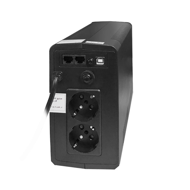– ساختار Line Interactive – کنترل ریز پردازنده دیجیتالی – مدار پایدار ساز در برابر نوسانات AVR – نمایشگر LCD و آلارم صوتی – استفاده اتوماتیک از باتری هنگام قطع برق شهر – رنج وسیع ولتاژ ورودی ۲۷۶-۱۶۶ ولت – رنج وسیع فرکانس ورودی۵۵-۴۵هرتز – استفاده اتوماتیک از باتری هنگام قطعی برق ورودی – دارای پورت USB جهت مانیتورینگ پارامتر های دستگاه – مدت زمان بک آپ ۱۰ تا ۲۰ دقیقه – دارای فیوز ورودی برق شهر با دسترسی آسان – دارای سوکت مخصوص تلفن و فکس جهت محافظت از تلفن و فکس در مقابل نوسانات و نویز – چک کردن اولیه سیستم هنگام روشن شدن و نمایش کد خطا در صورت وجود نقص در دستگاه – روشن شدن اتوماتیک دستگاه هنگام برق دار شدن ورودی برق شهر دستگاه – دارای خروجی شبه سینوسی (مناسب برای بارهای مصرفی غیرحساس)