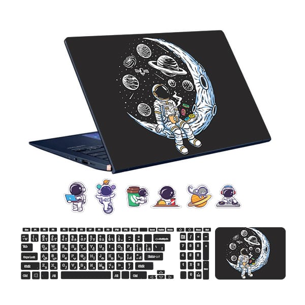 استیکر لپ تاپ طرح Astronaut کد 08 مناسب برای لپ تاپ 15.6 اینچ به همراه برچسب حروف فارسی کیبورد